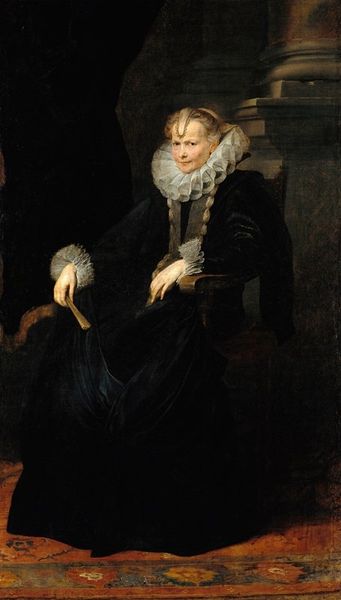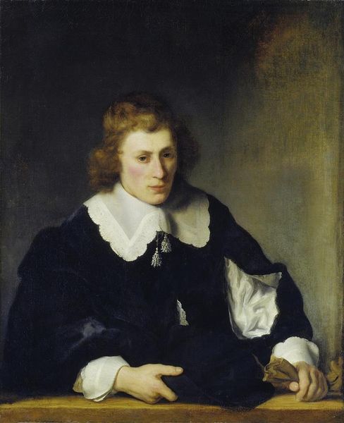 Curator: Orest Kiprensky painted this striking portrait of Vasily Alekseevich Perovsky in 1809. Editor: My first impression is one of understated drama. The way light plays across the ruffled collar and the subject's gaze draws you in, despite the muted tones. There's a tangible texture to the fabric. Curator: Kiprensky was one of the most celebrated portrait painters of the era. He captured not just likeness but also a certain social standing. Note Perovsky's somewhat opulent garb, yet a stiffness or guardedness about him, quite reflective of Russian aristocracy at the time. Editor: I find myself drawn to the details of that garment – the construction of that collar, the layers of cloth involved in crafting the sash... each choice is not merely aesthetic, but also reflects the skill and labor of various artisans, whose hands and techniques are invisibly part of this creation. Curator: Absolutely, the artist presents his subject with accoutrements fitting his social role. But I am drawn to Perovsky’s own role. Kiprensky’s own background might speak to how artists maneuver in shifting political sands, given the shifting role of art during the Romantic movement. Editor: Do you think that attention to detail speaks to a desire to ennoble these crafts? Because it’s clear this isn’t just about documenting social status, but a real appreciation of skill of labour – like it elevates artisanal making closer to fine art! Curator: Perhaps. One could suggest that Kiprensky hints at the complexities of representation. By allowing these tangible and opulent materials to dominate our gaze alongside the portrait subject, Kiprensky subtly elevates their social status in parallel. Editor: I agree completely. By understanding that every part of the creation here stems from resources and a dedicated manufacturing force, a different sense of richness is apparent, than that portrayed just by virtue or background. Thank you for helping to reveal more in these layers. Curator: The pleasure was all mine. It's interesting how a work can resonate on so many different cultural and even material levels.