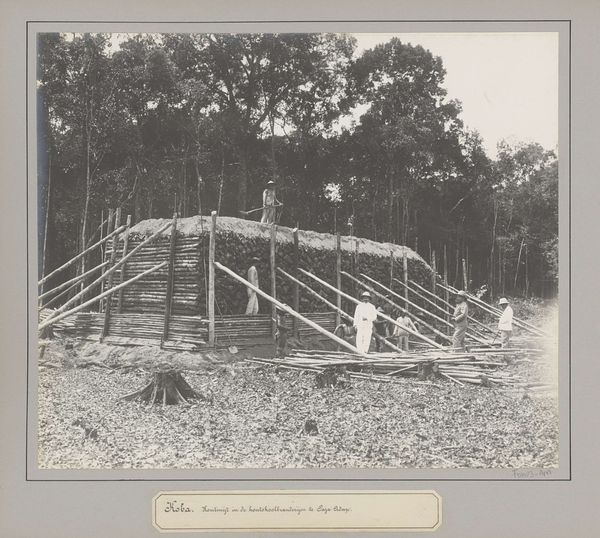 Editor: So, here we have Richard Tepe’s photograph "Eendekooi," a gelatin silver print made sometime between 1900 and 1930. I’m immediately struck by the composition – this long structure leading into the depths of the woods, almost like a path into another world. What do you see in this piece? Curator: The "Eendekooi", or duck decoy, is rich in symbolic imagery connected with both the human manipulation of nature and our deep-seated need for control. Think about the formal elements: a constructed path and cage contrast with the seeming wildness of nature; the darkness presses in around a narrow corridor, guiding the viewer's eyes. Editor: So, this isn’t just a landscape, but something much more deliberate? Curator: Exactly. Consider the duck decoy itself. It is a symbol of carefully planned deception, a tool designed to lure creatures to their capture. The image, in that sense, speaks volumes about our relationship with the natural world. Editor: Deception…that’s interesting, especially in photography. Isn’t it supposed to capture reality? Curator: It can, but remember that photography is also a crafted image, and therefore also a form of construction. The light, shadow, and perspective have all been meticulously chosen and composed. Can you perceive any element in this image, seemingly straightforward at first glance, that adds symbolic weight? Editor: The bare trees, maybe? They give it a feeling of waiting, of expectation. Curator: Precisely! Those barren trees speak to cycles, endings and beginnings, vulnerability… even the stillness suggests an anticipation, a tension before the trap is sprung. What's so haunting is this photograph freezes that in time. Editor: I’m seeing it so differently now. Thanks for revealing all the symbolic elements I overlooked.