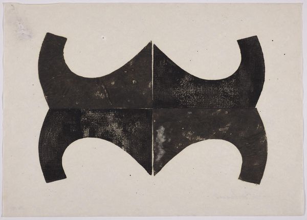 This is "Blue Club (working proof 7)," an undated print by Richard Diebenkorn. It was made using etching, a process that demands patience and precision. The artist covers a metal plate with a waxy, protective layer, then scratches an image into it with a sharp needle. The plate is then submerged in acid, which bites into the exposed lines, creating grooves. Ink is applied, filling these grooves, and the surface is wiped clean. Finally, the plate is pressed onto paper, transferring the image. Here, Diebenkorn uses this method to explore abstraction. Notice how the etched lines define the spade shape and the other overlaid geometric forms, lending a sense of depth and texture to the composition. The "working proof" in the title tells us this was an experimental stage. In printmaking, each impression pulls on the last and can take a lifetime to resolve. By embracing the technical aspects of etching, Diebenkorn blurs the boundaries between process and product, inviting us to appreciate the labor and skill embedded within the art itself.