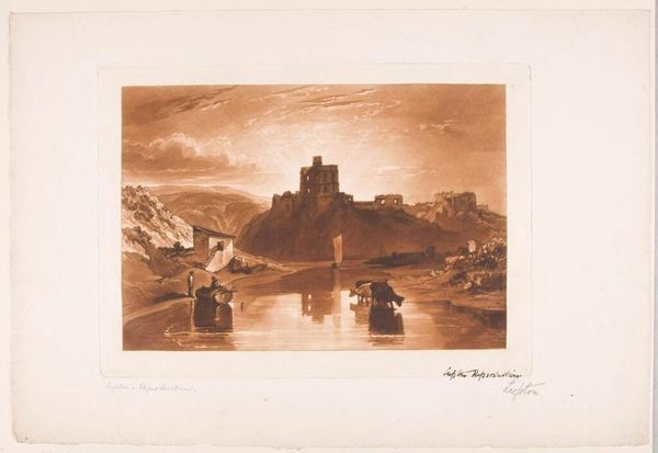 Curator: This is "Martello Tower," an engraving by W.B. Cooke, after a drawing by Clarkson Stanfield. The Tate holds this small image—only about 9 by 14 centimeters. Editor: Immediately, I sense a quiet melancholy here. The muted tones, the isolated tower… it evokes a feeling of solitude and reflection. Curator: Martello Towers were built along the British and Irish coasts in the early 19th century as a defense against possible invasion during the Napoleonic Wars. Stanfield, known for his marine paintings, often depicted such scenes. Editor: Yes, and that tower, perched so vulnerably on the coast, speaks volumes about the anxieties of the era. It's almost as if the landscape itself is holding its breath. Curator: Indeed. These towers, now often seen as quaint historical curiosities, were once symbols of a very real fear. This print reminds us of that precarious time. Editor: Absolutely. And that's the power of art, isn't it? To capture not just what was seen, but what was felt.