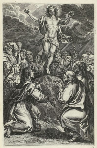 This print depicting the Resurrection of Christ was made by an anonymous artist and it presents a complex blend of religious narrative and social commentary. The image creates meaning through visual codes; we see Christ triumphant, ascending from his tomb as Roman soldiers are thrown into disarray. Note the radiant light emanating from Christ, a symbol of divine power overcoming earthly authority. This print reflects the religious climate of its time, likely produced in the Dutch Golden Age, when the rise of Protestantism challenged established Catholic iconography. The Rijksmuseum, as an institution, plays a crucial role in preserving and interpreting such artifacts. To fully understand this artwork, historians might delve into theological texts and social histories, examining how artists navigated religious and political landscapes. Art like this serves as a window into the past, reflecting not only religious beliefs but also the social conditions that shaped its creation.