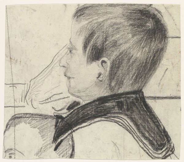 This small etching of a child's head in profile was made by Frans Schwartz, sometime in the late 19th or early 20th century. What grabs me about it is the directness of the marks, the way the lines create a sense of form without being too fussy. You can almost feel the artist thinking through the process, figuring out the best way to describe the curve of the cheek or the shape of the ear. The whole thing has a tentative, searching quality, which is what you get with etching, a technique that's so reliant on the touch of the hand. Look at the hair, see how Schwartz uses these little, almost scribbled lines to suggest the texture and volume? It's not about perfect representation; it's about capturing a feeling, an impression. It's like the artist is saying, "Here's a kid, a real, live kid, with all his messy energy and potential." This reminds me of Käthe Kollwitz's prints, with that same raw, emotional intensity. And like her, Schwartz reminds us that art isn't about perfection; it's about exploration, about finding meaning in the messy, imperfect world around us.