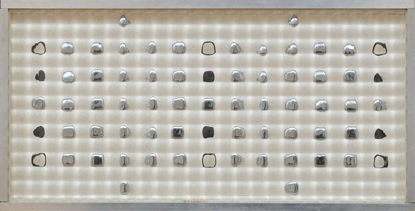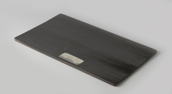 Curator: This striking woodblock print is attributed to Kiyoshi Saito, titled "Untitled (Abstract wood block print of field with stones)." While undated, it resonates with the visual language he developed. What’s your first take? Editor: Quiet, very still. It’s so reduced, these almost geometric forms...it makes me think of Zen gardens and a very contemplative kind of space. Curator: Saito, like many artists of his time, navigated a complex socio-political landscape. After the Second World War, there was a renewed interest in traditional Japanese aesthetics even as artists were grappling with Western abstraction. Do you see that tension here? Editor: Definitely. The composition, the horizon line – it recalls traditional Japanese landscapes. But the simplification… those stones, they could be mountains, clouds, almost archetypal forms that evoke an essential Japanese spirit. There is such emotional and psychological weight in such seemingly spare symbolism. Curator: That’s insightful. Saito embraced the Sosaku-Hanga movement which advocated for artist-designed, carved, and printed works. The artist has control. And these bold black planes broken up by horizontal bands? Very daring in their starkness. Editor: That intense black…it almost feels like a psychological space rather than a literal field. It's a space of introspection, perhaps of solitude. The stones, so few, seem monumental in this void. It hints at something both familiar, but alien, too. I see connections with Shinto and rock veneration Curator: Saito exhibited internationally, including at the Sao Paulo Biennial, really contributing to the post-war perception of Japan. It makes me wonder what his western audience, would have brought to an image like this? Editor: Perhaps they would read it through their own frameworks – modernism and abstraction. The beauty of art lies, I think, in these dialogues between different interpretations across cultures. What does this say to you? Curator: The way Saito balances tradition and abstraction reveals a post-war negotiation, in Japanese art circles. It speaks of a nation trying to reconcile itself with the present moment. A bold reminder of how socio-cultural forces shaped this artist's individual aesthetic. Editor: It stays with me.