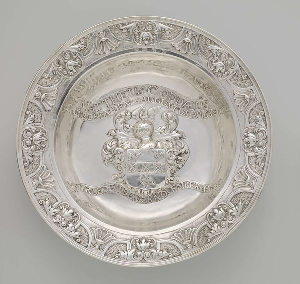 The flat dish is engraved with a coat of arms, possibly of the Van Aller family of Utrecht. Adam van Vianen probably made the majority of his works of art in silver for wealthy connoisseurs in the Netherlands. The auricular border merges into a group of ancient gods: Bacchus, Ceres and Venus with Cupid.
