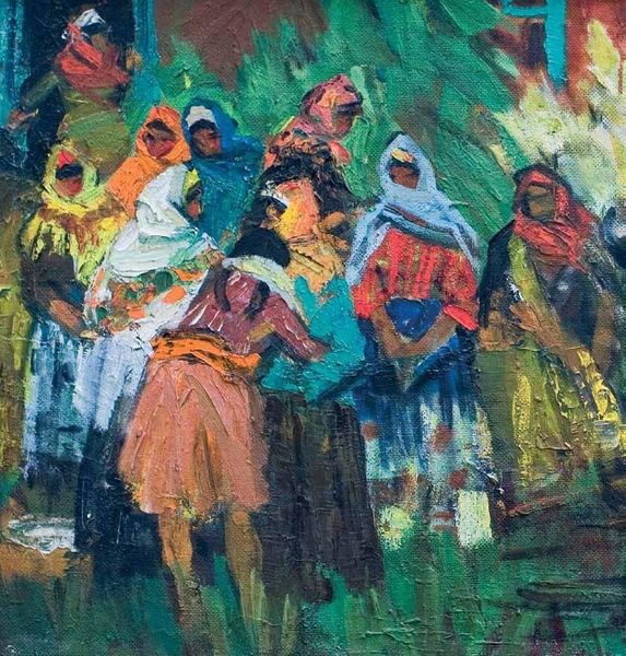 Amadeo de Souza-Cardoso made this Village Market painting with oil, likely on a small panel, probably en plein air. What grabs me first is the painting’s surface; it’s raw, exposed, like he couldn't wait to capture the moment. The brushstrokes are thick, almost sculptural, giving the scene a lively, bustling energy. I love how the colours aren’t blended so much as juxtaposed. Look at that roof, a bold stroke of blue sitting right next to the tan of the panel. It's this kind of immediate, intuitive mark making that really speaks to me. The brown of the panel peeps through, acting as a kind of unifying tone, a reminder of the material reality beneath the illusion. Notice the figure on the right, rendered in just a few dark strokes, yet full of presence. It’s like he’s saying so much with so little. This painting reminds me a little of the early Fauvist paintings of someone like Derain, who were similarly interested in simplified forms, and raw application of paint. It feels like part of an ongoing conversation about how we see, and how we translate that seeing onto canvas.