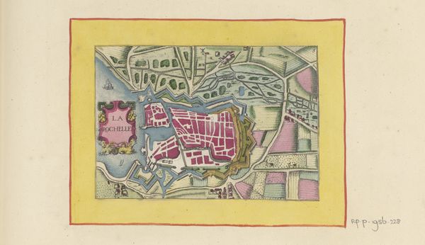Editor: Here we have a “Vestingplattegrond van Roquecourbe,” or fortification map of Roquecourbe, dating back to 1638, made using ink on paper. It has the appearance of an illustrated town plan from above. It’s fascinating to look at! What stands out to you? Curator: The intricate detail achieved with ink on paper invites consideration of its means of production. This isn't just a landscape; it’s a representation born from specific social and material conditions. We need to consider who commissioned it, who drafted it, and for what purpose. Editor: That’s interesting, I hadn’t thought of that. Why would someone want such a detailed town plan? Curator: These kinds of maps were produced in times of military conflict and shifting territorial control, but beyond purely military strategy, the consumption and circulation of such an object is tied to class. Think about who possessed the resources to commission and understand it – and thus, who benefited from it. Do you notice any signs of that power encoded within this map? Editor: The scale, the detail of each structure – I guess that does require resources. So it's less about appreciating the landscape and more about understanding its place in a social and economic framework? Curator: Precisely. The landscape is reduced to an asset, documented, and consumed. What this map tells us isn’t simply about cartography, but about the society that produced it, where power dictated the very *seeing* of the land. Editor: That is such a great perspective. I guess I'm thinking more critically about these older artworks now. Thanks for sharing! Curator: My pleasure. It’s through examining the physical artifacts of production and consumption that we reveal art’s true value – or function, really – in society.