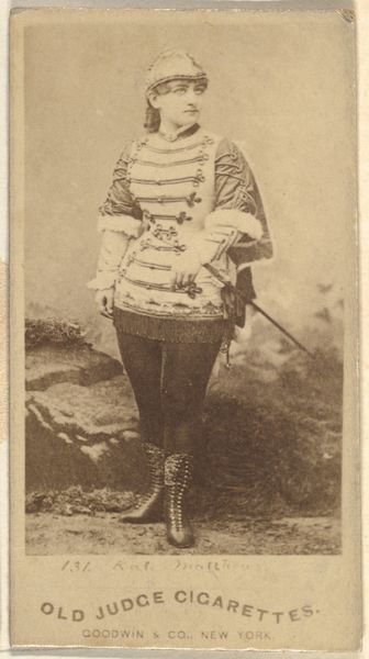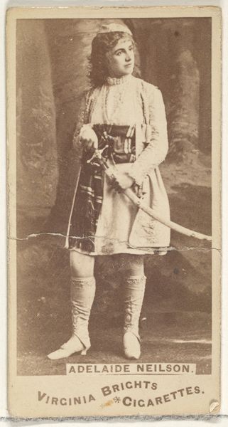 Editor: So, this is a trade card, “Card 447, Dana Willy,” printed sometime between 1885 and 1891 by Allen & Ginter for Virginia Brights Cigarettes. It’s a portrait of an actress, I’m guessing, based on the series title, but I’m struck by how… utilitarian it seems. Almost like it’s more about selling cigarettes than celebrating art or the actress herself. What's your take on this, looking at it through a historical lens? Curator: You've touched on something key – the context. These cards weren’t intended as high art, but as promotional items inserted into cigarette packs. Think about that. Art, mass-produced and circulated within a network designed to encourage consumption of nicotine. The “Actors and Actresses” series, in particular, hints at how celebrity culture was being leveraged even back then to move product. Who benefited the most from that exchange? Editor: I guess, first and foremost, the cigarette company, but perhaps also the actress gained some exposure? It's still being seen over a century later in a museum. But wasn't the museum more focused on promoting white male artists? Curator: Yes, the company benefited most immediately. And while this exposure certainly aided in cementing a celebrity’s image – and maybe even created new ones – it's worth asking who had agency here? Whose image was being circulated, and for what purpose? The Metropolitan Museum certainly would not have accepted it then for the aesthetic quality. More importantly, by placing figures like Dana Willy on these cards, the cigarette companies legitimized the consumption of tobacco. Did Dana Willy share similar racial backgrounds to the intended target audience? The historical weight of what gets seen, how it's seen, and where it's seen reveals subtle power dynamics at play. Editor: That really shifts my perspective. I was just looking at it as a simple portrait, but the context completely changes the meaning and impact. Curator: Exactly! It's a reminder that even seemingly innocuous images are embedded within larger networks of power and commerce. Now, next time you see an artwork, remember to always ask questions about not just what it depicts, but why and how it was made and circulated! Editor: That's fascinating. I'll definitely keep that in mind. Thanks so much.