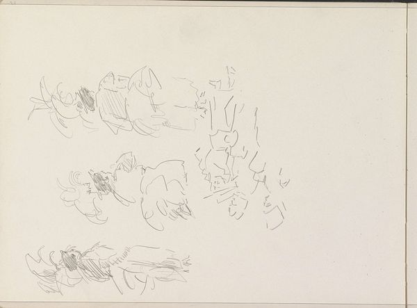 Max Beckmann made these "drei Figurenstudien", or portrait studies, with pencil. The scribbly quality of the line is what grabs me first; it's like he's feeling out the forms, not trying to nail them down. You can see how the pressure on the pencil varies, making the lines darker or lighter, thicker or thinner, almost like a heartbeat. Look at the jumble of marks that suggest the head on the left – it’s a cloud of thinking, a storm of observation. Then, over on the right, the more defined profile almost seems to emerge out of the chaos. Beckmann’s work often has this tension between clarity and confusion. Think of his paintings, with their crowded compositions and distorted figures. He reminds me a bit of Picasso, in that way, always pushing and pulling at the edges of representation. He uses line not just to describe, but to evoke a whole mood, a state of mind.