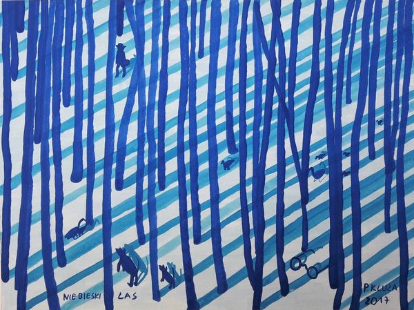 Editor: "Winter Woods" by Eyvind Earle, created in 1998. It looks like an ink drawing, a very striking silhouette of bare trees against a light pinkish-purple background. It evokes a feeling of stillness, a quiet winter day. What do you see in this piece? Curator: I see the breath of winter held still. The artist, Earle, was a master of simplified forms and intricate detail, wasn't he? And I find that delicate dance particularly evident here. The stark, almost calligraphic lines of the trees create such rhythm. It’s a kind of visual poetry, capturing winter’s stark beauty, wouldn't you agree? It also reminds me of how winter reveals the underlying architecture of nature, those shapes that are hidden in the lushness of other seasons. What does the colour palette do for you? Editor: It definitely reinforces the feeling of cold. The choice of colors makes the woods look mysterious, almost magical. And the bare branches almost seem to have a delicate and fragile aspect, too, in contrast with how majestic trees can be during warmer seasons. Curator: Indeed! I’d wager it makes one think about ephemerality, doesn't it? Each branch a fleeting whisper against a backdrop that is equally impermanent – dawn, or dusk, a fleeting moment in time. Think of how, in traditional landscape paintings, winter scenes were often allegories of mortality. Earle is doing something subtler, I think. Editor: I never would have considered mortality, but you're right, it adds another layer of depth. I see so much more to this drawing now! Thanks! Curator: My pleasure! It’s often the quietest works that speak the loudest if we are willing to listen closely.