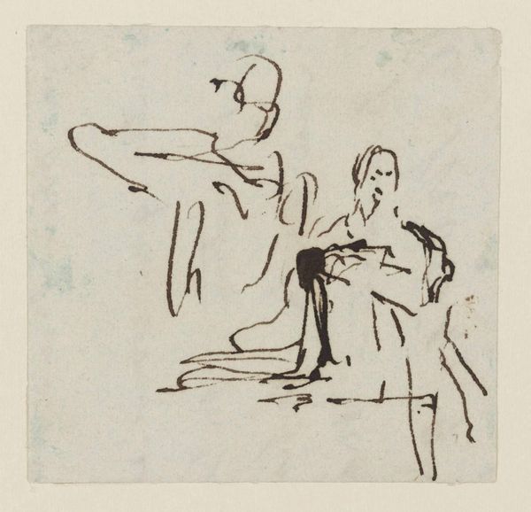 Curator: Looking at this work by Thomas Stothard, "Rough Sketch of a Group of Figures," I’m immediately struck by its incompleteness, its openness. Editor: It feels like a fleeting moment captured. Are they witnessing something? There's a sense of anticipation radiating from these rapidly sketched figures. Curator: Stothard was active in the late 18th and early 19th centuries and primarily worked as an illustrator. The sketchiness suggests a preliminary exploration of a larger composition. The facelessness of the figures really contributes to the symbolism. Editor: Do you think that anonymity lends itself to a more universal reading, turning these figures into types rather than individuals? It feels like a dreamlike image of a gathering or a procession. Curator: Precisely, the lack of distinct features allows viewers to project their own interpretations onto the scene, tapping into collective memories of communal events. Editor: It's fascinating how just a few lines can evoke so much. It leaves me pondering the narratives we construct around incomplete images. Curator: It’s that very ambiguity that makes it compelling, isn’t it? The image invites us to contemplate the power of suggestion in art.