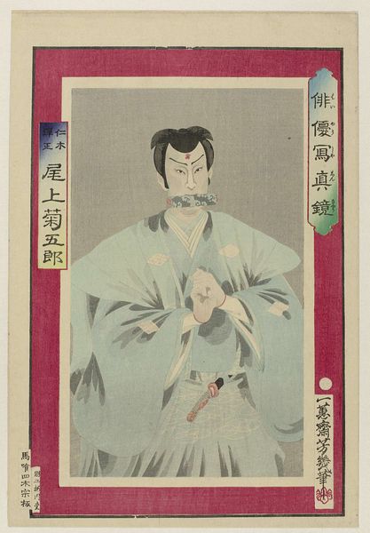 Gigadō Ashiyuki created this woodblock print of Kabuki actor Arashi Kitsusaburō II in Osaka, Japan in the early 19th century. It presents the actor as Kajiwara Heiji, from the play "Records of the Battles between the Minamoto and Taira Clans." Looking at the image, the actor’s stern expression and the prop pipe create a sense of tension and drama. The cherry blossom motif surrounding the actor's portrait locates the print within a tradition that valued beauty and ephemerality. In the floating world of Osaka's Kabuki theatre, actors were among the celebrities of their day. Woodblock prints like this one were thus important cultural products, feeding the public’s appetite for images of their stage heroes. To understand the significance of this print, we might research the history of Kabuki theatre in Osaka and the role of actors in popular culture. Also, we might compare prints of different actors and plays to understand the artistic conventions and social meanings of the genre.