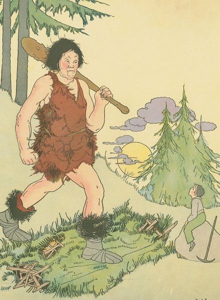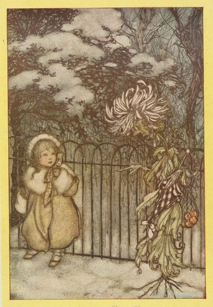 Curator: This is "The Merchant and the Beast", a watercolor by Margaret Evans Price, created in 1921. What's your immediate take? Editor: Fairy tale vibes, absolutely! But tinged with something unsettling. Is it just me, or does that lion-man look both regal and faintly… annoyed? And that merchant—such a posture of complete supplication. The colors are so gentle but the situation looks fraught! Curator: Yes, the juxtaposition is interesting. This scene directly echoes the “Beauty and the Beast” narrative – particularly the moment when the merchant, stealing a rose for his daughter, incenses the Beast. Notice the roses. There is the lovely cluster of pink ones, but yellow ones too... Did the merchant select both types, leading to double offense? Roses are symbolic in many cultural traditions. Editor: The roses are wonderful - a sort of character in the story. They soften everything, even that massive paw raised in—is it anger? Exasperation? You're right about that posture of submission – like a Medieval illumination, a kind of flattened, emotional tableau. It really evokes the theatricality of storytelling. Are we supposed to feel sorry for him or think about the underlying cause of this potential violence? Curator: Exactly. The symbols resonate: The rose representing beauty, the beast as concealed humanity, or the inherent violence of unchecked wealth. What did the merchant promise in return for his safety, after all? Whose "beauty" will pay for the stolen roses? Editor: I love how it plays with scale too, as the artist gave an impressive monumentality to the figures even though the colors are washed out in a style resembling classic book illustration. Like a dream of power, played out in a child's picture book. Makes you wonder who the true beast really is… Curator: Food for thought, indeed! These illustrations are an important reminder of visual and cultural heritage. Editor: Precisely. This has me wondering about beauty standards themselves, then and now...Thanks!