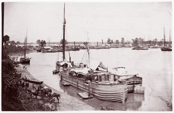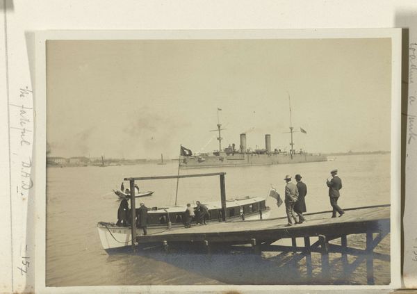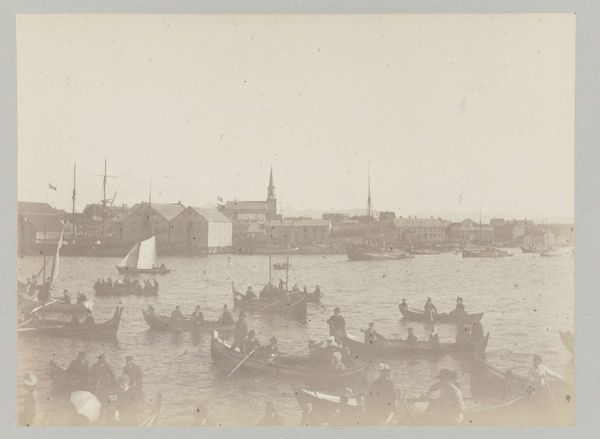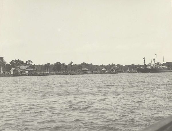 This is a photograph of the port of Alexandria, captured by Johannes Lodewijk Heldring. The composition reveals a horizon line that divides the frame, emphasizing the expansive body of water below and a muted sky above. The overall tonal range is limited, dominated by sepia hues that lend a timeless quality to the scene. Consider how the photograph's structure invites us to decode its cultural context. The harbor is dotted with vessels, indicating maritime activity and trade. The building is a symbol of administrative or commercial power. Heldring’s choice to frame the scene this way creates a narrative, evoking the complexities of international exchange and the power dynamics inherent in colonial encounters. Note how the photograph’s formal qualities, like its subdued color palette and balanced composition, function not merely as aesthetic choices but as visual signifiers. They offer insight into the historical and cultural conditions shaping both the subject and the act of representation itself.