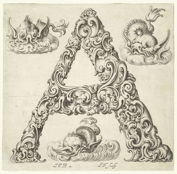 Jeremias Falck produced this engraving of the letter K in the 17th century. The image, made during the Baroque period, embodies that era's love of ornamentation. The letter itself is formed of swirling, organic shapes. Notice the fantastical creature nestled at the base of the ‘K’—a testament to the period's fascination with the mythical and the exotic. Falck was active in Poland, and his work reflects the influence of the Northern Renaissance as well as the burgeoning scientific curiosity of the time. But beyond its aesthetic appeal, consider what this image represents in the broader context of its time. Literacy was expanding, and printed materials were becoming more accessible. Images like this served not just as decoration but also as symbols of knowledge and learning. As historians, we can delve deeper into the social and cultural meanings embedded in this image by examining its style, its relationship to contemporary printing practices, and its role in the dissemination of knowledge.