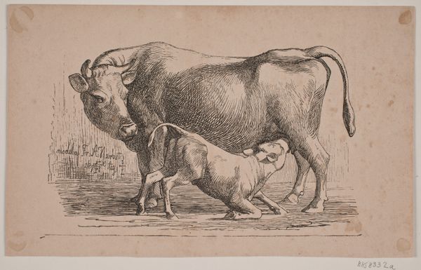 Johannes Wilhelm Zillen created this etching of a standing bull and a reclining cow sometime in the mid-19th century. The image presents a serene view of rural life. Considered through a social lens, we can see that as the 19th century progressed, more and more Europeans moved into urban centers, leaving behind a life of agriculture. Images such as this one would have resonated with buyers and collectors, reminding them of simpler times. The etching technique itself speaks to the rise of printmaking as a viable art form. It allowed for the wider distribution of images, democratizing art ownership to some degree. Art historians might explore how the image embodies the burgeoning Romantic movement, which valued emotion, nature, and the past. By researching Zillen’s personal history, and the archives of institutions displaying his work, we may gain an even richer understanding of the image's meaning.