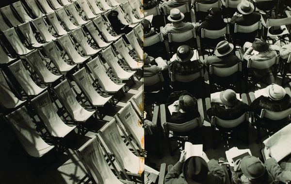 Editor: This image by Paul Coldwell from the Tate collection presents a row of suits, I think. It's quite stark, almost melancholic. How do you interpret this work? Curator: I see a commentary on consumer culture and identity. Rows of identical suits suggest conformity, while the absence of people hints at alienation. The image challenges the viewer to consider the role of clothing in constructing our public selves and societal expectations. Editor: So, it's less about the suits themselves and more about what they represent socially? Curator: Precisely. Think about the socio-political context in which Coldwell was working. The rise of mass production and its impact on individuality. Editor: That makes a lot of sense. It's unsettling, but also thought-provoking. Curator: Indeed, art often serves as a mirror, reflecting our own cultural anxieties.