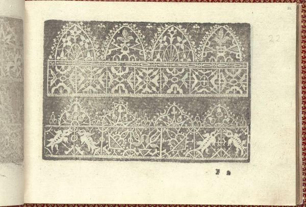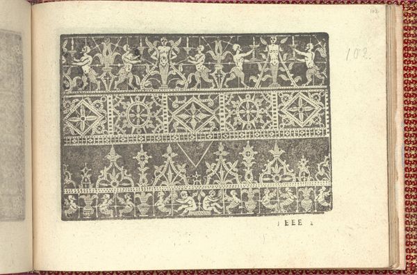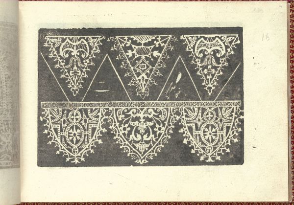 This is page 103 from the first of four books entitled "Corona delle Nobili et Virtuose Donne", or "Crown of Noble and Virtuous Women," made by Cesare Vecellio in Venice, Italy. Published in the late 16th century, this pattern book showcases various designs for lace, embroidery, and other needlework. The book was intended to provide patterns and inspiration for women engaged in textile work. The production of lace and embroidery was an important economic activity for women in Renaissance Italy, and pattern books like this one played a significant role in disseminating new styles and techniques. They also helped to set standards of taste and skill. Lace was not just a decorative element. It was an indicator of status and wealth. Today, scholars examine account books, inventories, and sumptuary laws to better understand the history of textiles in Europe and its crucial role in the social and economic life of the Renaissance. This page offers a glimpse into the visual culture of the period. It reveals the aesthetic preferences and the artistic skills valued at the time.