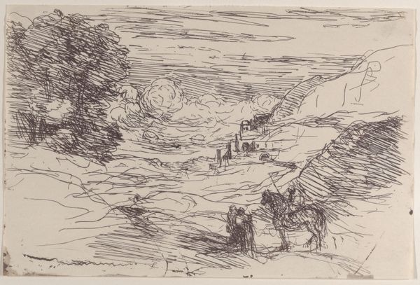 This landscape with tall trees by Egbert Rubertus Derk Schaap is rendered in pencil, presenting a study in tonal variation. The composition, dominated by the verticality of the trees, is grounded by a horizontal plane, creating a balanced yet dynamic interplay of forms. Schaap masterfully employs line and shading to evoke depth and texture. The density of the pencil strokes varies, creating a chiaroscuro effect that enhances the emotional depth of the scene. The landscape is represented through a series of marks, which creates the structure of the composition. The contrast between the dark, densely shaded trees and the lighter, sketchier ground invites the viewer to reflect on the relationship between the solid and the ephemeral, the grounded and the aspiring. The simplicity of the medium belies a sophisticated understanding of form and light. This work challenges conventional landscape portrayals by using a semiotic system where line and tone are not merely representational, but also expressive. The drawing functions as a cultural artefact, where the landscape becomes a site for exploring visual language and subjective experience.