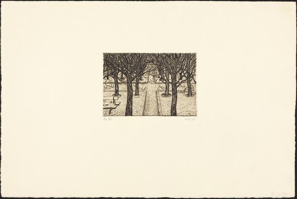 Terrasse au Trocadero is an etching, by French artist Roger Vieillard. Vieillard, born in 1907, lived through two World Wars, which profoundly influenced his artistic perspective. His prints, often characterized by their intricate detail and subtle tonality, invite us to reflect on the human condition within the urban landscape. Here, the Trocadero terrace becomes a stage where architecture meets nature, and where the past converses with the present. The grand structures suggest power and permanence, while the delicate rendering of trees and sky infuses the scene with a sense of ephemeral beauty. Consider the viewpoint the artist has chosen. The artist invites us to contemplate our place within the grand scheme of history and our relationship to the spaces we inhabit. Vieillard's work captures the quiet moments of introspection amidst the hustle and bustle of city life, asking us to consider the stories embedded in the stones around us.