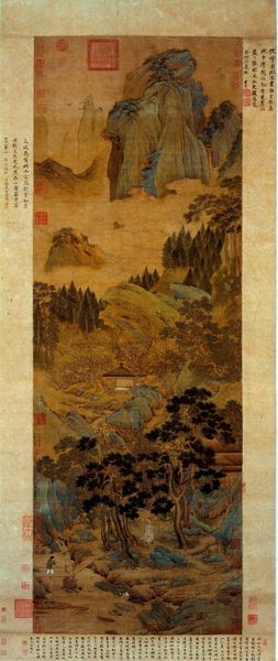 Yosa Buson painted "Enjoyment of Summer Scenery" using ink and color on paper, capturing a tranquil moment with profound cultural echoes. Dominating the scene is the figure in the humble hut. The reclined figure is a symbol deeply rooted in the Taoist and Buddhist traditions of seeking harmony with nature. Observe how this motif of retreat echoes through time. From the philosophers of ancient Greece seeking solace in nature, to the Christian hermits in desolate landscapes, the imagery of withdrawal is a constant. The act of observing the landscape, here framed by the window, reminds us of the "hortus conclusus," the enclosed garden, a symbol of inner peace. The natural elements in this painting, like the trees and rocks, have been passed down through history to us, shifting in meaning. The act of turning away from the world is also a recurring theme that conveys intense longing for peace and self-reflection. This cyclical motif resurfaces, evolving, and acquiring new resonance across epochs.