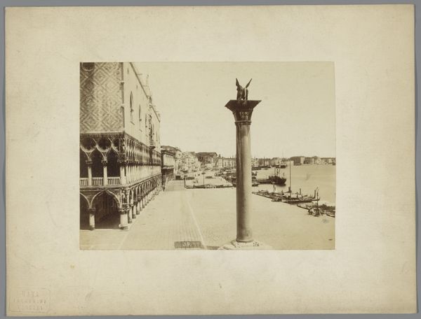 This photograph, "Gezicht op de Riva degli Schiavoni met op de voorgrond een pilaar met de leeuw van Venetië", was created by Giorgio Sommer, an Italian photographer of German origin, during a time when photography was capturing and shaping perceptions of places and cultures. Here, we see the Riva degli Schiavoni in Venice, anchored by a pillar topped with the Lion of Venice, a potent symbol of the city's power and identity. What does it mean to capture an image of a place so steeped in history and symbolism? Sommer, an outsider himself, documents this iconic scene, but through whose eyes are we seeing it? Consider the figures populating the scene, their presence, and their relationship to the space. What stories are being told, and whose perspectives are included or excluded in this visual narrative? This photograph invites us to reflect on Venice's layered history and the complex dynamics of identity, representation, and power. It captures a moment in time, but it also prompts us to consider how places are constructed, perceived, and remembered through the lens of those who document them.