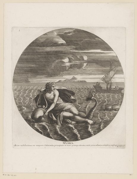 This etching by Jacques-Antoine Friquet de Vauroze depicts "Safety," or "Securitas," as the Romans called her. The goddess sits confidently atop a defeated lion, cradling a cornucopia overflowing with flowers. The lion, a symbol of strength and courage, here embodies the subdued forces of chaos and danger. The cornucopia, an ancient symbol of abundance and nourishment, stretches back to the Greek myth of Amalthea, the goat whose horn provided unending sustenance to Zeus. We see versions of this in depictions of Fortuna, the Roman goddess of fortune, connecting security with prosperity. The column in the background, often associated with stability and permanence, can be seen in other works celebrating victory. Consider how this image, rooted in classical antiquity, reflects a deep-seated human desire for safety and abundance, emotions so powerful that they transcend time. It is a symbol passed down through history, resurfacing in various guises, reminding us of our collective memory and the enduring quest for security.