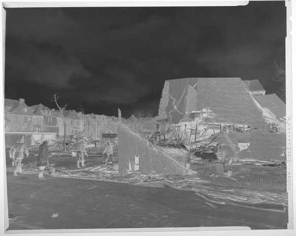 Editor: This intriguing negative photograph by John Howell, simply titled "Untitled (exterior of large house in snow)," shows us a grand house cloaked in winter. The stark contrast really emphasizes the architectural details. What strikes you most about this image? Curator: The depiction of wealth during eras of social inequality is unavoidable. Consider how the sheer scale of the house—amplified by the stark winter setting—speaks to privilege. How might the absence of people further emphasize this feeling of isolated grandeur? Editor: That’s a great point. The lack of inhabitants makes it almost ghostly. It makes me think about how such images might have been perceived differently during different historical periods. Curator: Precisely! Photographs like these offer a window into understanding the values and power structures embedded within society at the time of their creation and reception. Editor: I hadn't considered the socio-political context so directly, but it adds a whole new layer of interpretation. Thanks! Curator: My pleasure; that's how we can examine the public role of art and politics of imagery.