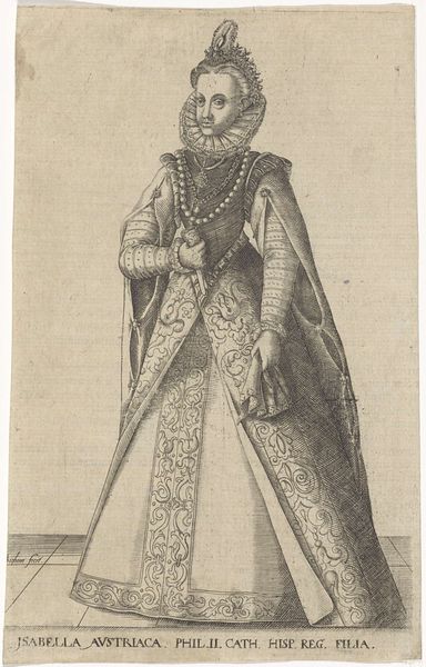 Curator: Here we have Adriaen Matham's 1620 engraving, "Portret van Albrecht van Beieren, graaf van Holland en Henegouwen," which translates to "Portrait of Albrecht of Bavaria, Count of Holland and Hainaut." It’s part of the Rijksmuseum collection. Editor: The first thing that strikes me is the meticulous detail, considering it's an engraving. And the solemnity of the figure, standing armed with both a sword and a shield, really conveys power, even if rendered in monochrome. Curator: Indeed. Matham was working within established portrait traditions of the time. Consider the societal function of such imagery – it’s meant to project authority and legitimacy. Note the inclusion of his coat of arms on the shield. The portrait aims to situate Albrecht within a specific lineage and right to rule. Editor: That coat of arms is fascinating, isn’t it? The heraldic symbols speak volumes. And beyond its decorative function, I wonder what stories those particular symbols are trying to tell us about the man's legacy. A kind of visual autobiography intended for posterity, perhaps? Curator: Precisely. The sword also acts as more than just an indicator of Albrecht’s status as a nobleman. Swords are symbols of justice and resolve, communicating that he would have been viewed by his contemporaries. The print itself acts as a political artifact, produced in multiples. Editor: So, while the original intention might have been one of straightforward commemoration, the images have layered meanings as these circulated. In what ways do you imagine these types of portraits influence broader audiences, generations after they were made? Curator: It perpetuates a very specific, deliberately constructed narrative, both for Albrecht's time and beyond. Such images act as powerful reminders of social structures and power dynamics. As the portrait traveled, it becomes a complex, evolving symbol far beyond the individual it depicts. Editor: So, as an echo, what began as a straightforward portrait evolves into a testament about both the Count of Holland and also the way power likes to see itself presented and preserved.