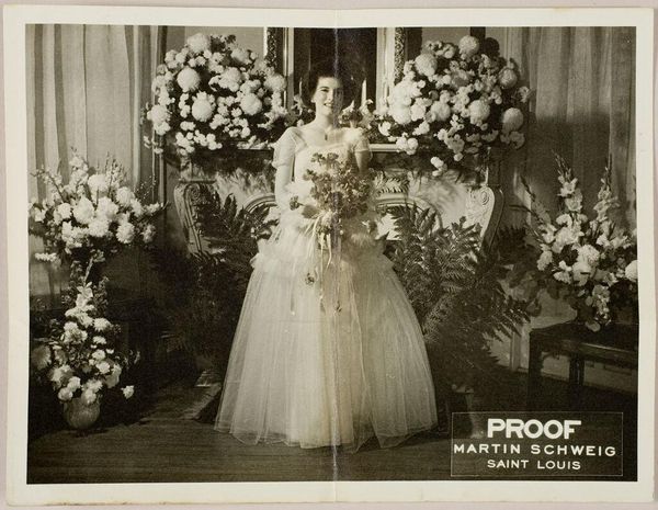 Editor: This photograph by Martin Schweig, simply titled "Untitled," presents a young woman in a black suit. It's striking how the image itself highlights the photographic process, with the stamp marking it as a "proof." What catches your eye about its materiality and context? Curator: The "proof" inscription is key. It directs our attention to the means of production. This wasn't meant for display, necessarily, but for assessment. We might consider the labor involved – the photographer, the sitter, the darkroom processes – and how those informed the final image, and what that says about the social context in which it was created. Editor: That's interesting. So it's less about the subject and more about the making? Curator: Not exclusively, but the materiality gives us a crucial lens. What materials define class, profession, or a particular moment? Editor: So, the paper itself is part of the story. I never thought of it that way. Curator: Precisely. That paper trail is its own kind of artifact.