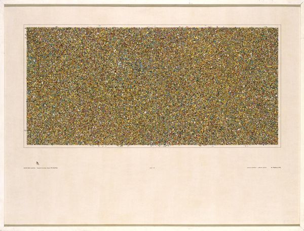 Curator: Here we have Ian Stephenson's "Flaxman: Understudy," a sizable piece residing at the Tate, measuring approximately 76 by 101 centimeters. Editor: It’s mesmerizing! From a distance, it reads almost like a static screen or a field of stars, but up close, it’s a dense aggregation of colour. Curator: Stephenson was known for his innovative techniques, often involving the application of paint in a very direct, almost physical manner. He challenged traditional notions of painting. Editor: I see that challenge reflected in how the materiality almost overrides any representational form. It makes me think about how art institutions define and value different kinds of labor and expression. Curator: Absolutely, and considering the socio-political context of the time, Stephenson's work can be seen as a commentary on the commodification of art and the artist's role in society. Editor: It definitely encourages a conversation about how we assign meaning and value within these systems. I see how the work creates an opportunity to reimagine these power structures. Curator: It's work that stays with you, sparking questions about art's place in the world. Editor: A powerful invitation for critical engagement, indeed.