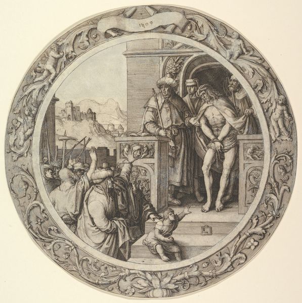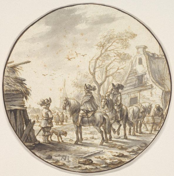 This tin-glazed earthenware plaque was created by the Alcora Manufactory in Spain, a time when European art was deeply engaged with themes of social hierarchy and identity. The scene presented offers a glimpse into the negotiation of class distinctions. Notice the contrast between the well-dressed figures in conversation and the resting woman and child. It invites reflection on the era’s complex social fabric, and how power dynamics were visually constructed. The detailed rendering of the landscape, complete with classical architectural elements, positions the figures within a narrative of leisure and status. The plaque seems to capture a moment of daily life, yet it also reflects the broader social and economic structures of 18th-century Spain. It offers us a window into the lives and relationships that defined the period, subtly commenting on societal norms through its careful composition and detail.