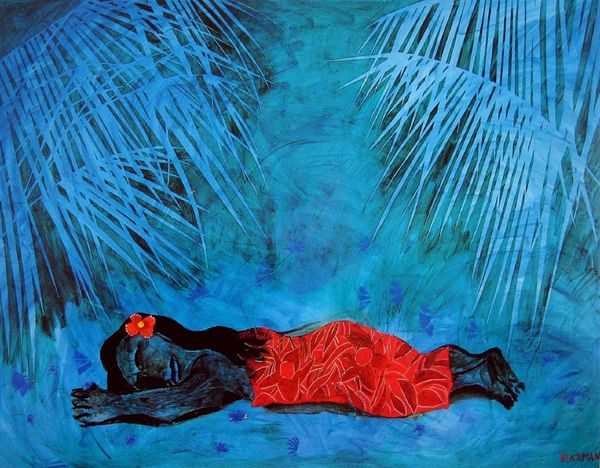 Kehinde Wiley created this painting, titled “Matador,” using oil on canvas, a classic combination that goes way back in Western art. Wiley’s approach is distinctive. He often begins by scouting models on the street, inviting them to select poses from art historical sources. Here, he’s chosen a figure reminiscent of classical reclining nudes, and positioned his model against a vibrant monochrome background. But notice the clothing: jeans, sneakers, and a brightly patterned jacket. These contemporary garments, likely mass-produced and reflective of everyday fashion, contrast sharply with the traditional medium of oil paint. This juxtaposition is not accidental. Wiley is deliberately blending the high art tradition of portraiture with the realities of contemporary urban life. This prompts us to consider labor and class. How does the act of painting, a historically elite practice, intersect with the lived experiences of the people Wiley portrays? By bringing these two worlds together, Wiley challenges our assumptions about who gets to be represented in art, and how. It's a powerful statement about visibility, representation, and the ongoing relevance of painting in the 21st century.