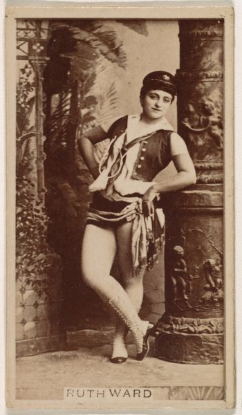 Goodwin & Company produced this card of Lily Elton, from the Actors and Actresses series for Old Judge Cigarettes, as part of a larger set during the late 19th century. The sepia tones and small format draw us into a contained world, one that blends the glamour of the stage with the everyday act of smoking. Focusing on its structure, the photograph is divided into distinct zones. The foreground is dominated by Lily Elton, posed informally. Behind her, the backdrop suggests a theatrical setting. The overall composition is carefully constructed, with the actress positioned to draw the eye upwards, encouraging a reading of the advertisement at the bottom. The choice of sepia is significant, lending a nostalgic air that speaks to the values of the time. It frames the actress as a public figure but also reinforces the connection between performance, identity, and the commodification of celebrity. This image engages with ongoing questions about representation, authenticity, and the spaces between public and private life.