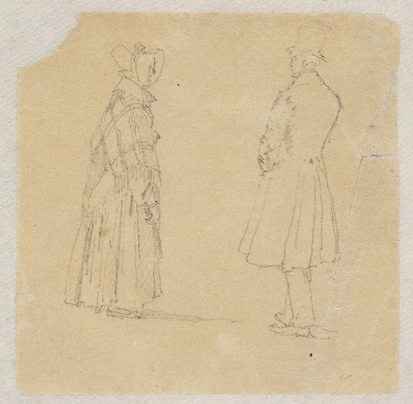 Curator: Before us is Joseph Highmore's "Four Full-length Studies of a Man Opening a Door," a small sketch from the Tate Collections. Editor: It has a certain weightlessness, doesn’t it? Like capturing a fleeting thought. Curator: Indeed. Highmore, born in 1692, has presented us with a fascinating exploration of movement. Notice how the solidity of the figure diminishes progressively. Editor: It speaks to the ephemeral nature of gestures within societal structures, suggesting a social ritual being enacted and re-enacted. Who is he opening the door for, and what does that access symbolize? Curator: It’s a study of line and form, where each iteration simplifies the figure into its essential components, pushing towards abstraction. Editor: Perhaps the door is always open for the wealthy, hence the lightness of touch. Curator: I find myself more drawn to the composition, to the artist's hand and the way it engages with the page. Editor: Well, I find the gesture of opening the door compelling as a narrative element— it speaks volumes about access and exclusion in 18th century society. A simple study, yet so much to consider.