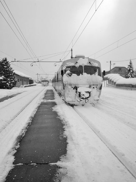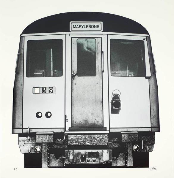 Editor: This photograph, titled "Amtrak Turbo in Snow, Hudson, New York" by James Welling, was taken in December 1991. The stark black and white image of a train cutting through a snowy landscape feels incredibly modern despite being over thirty years old. What do you make of this work? Curator: I find Welling's choice of subject fascinating. The Amtrak Turbo, a machine of modern transportation, is placed in a very specific, almost romantic landscape. Consider the materiality of the photograph itself. This isn’t just a depiction of transportation; it’s a commentary on the industry required to build, operate, and maintain both the train and the railway itself. What do you think Welling is suggesting by rendering all this in monochrome? Editor: Maybe he’s trying to flatten the hierarchy, make us think about the natural landscape and the human-made machine as equal players? It kind of downplays the romanticism, or highlights its constructed nature... Curator: Exactly. The lack of color emphasizes the textures, the way the snow clings to both the landscape and the train’s metal body. It encourages us to consider the process of both their creation and their eventual decay. It is an interaction with place and material; the engine and infrastructure are presented on similar levels of scrutiny. Editor: I didn’t consider it that way initially, focusing on the machine more. Thinking about materials, it makes me see it almost as a document, both aesthetic and materialist at the same time! Curator: Indeed, Welling draws our attention to these layered concepts in ways that allow for us to view industrial subjects with the kind of nuanced artistic vision previously only reserved for subjects thought to be distinct from them.
