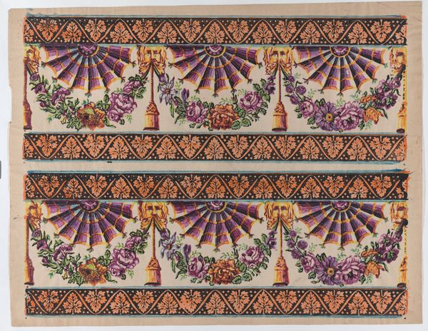 This sheet presents a border design with floral garlands and lace, created by an anonymous artist, now held at the Metropolitan Museum. Observe the recurring motif of floral garlands intertwined with delicate lace. Flowers, symbols of renewal and transient beauty, have been revered across cultures, from ancient Roman festivities to Renaissance paintings, embodying themes of love and mortality. The lace, with its intricate patterns, speaks of human artistry and a desire to refine and adorn. The use of garlands can be traced back to classical antiquity, where they were associated with celebrations, religious rites, and expressions of joy. Consider how these motifs reappear in Renaissance paintings, adorning figures of deities or framing scenes of idyllic bliss. In a psychoanalytic light, the garland, like a visual echo, resonates with our collective memory, embodying the eternal human desire for beauty, connection, and transcendence. This design, with its repeating patterns, captivates, engaging us with its subconscious appeal. Thus, the garland motif continues its journey through time, evolving, adapting, and resurfacing in new forms, carrying echoes of its past.