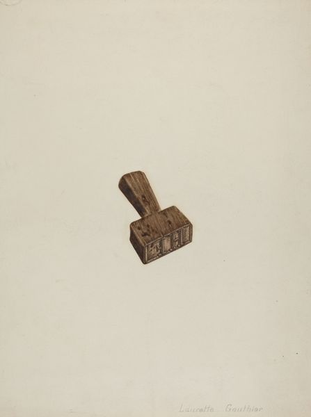 Editor: Here we have Carl Keksi's "Wooden Stamp," dating from 1935 to 1942, a pencil drawing. The detail is really striking. What strikes me most is how this everyday object has been rendered with such care and precision. How do you interpret this work, especially given the historical context? Curator: Well, what resonates with me immediately is the period. The late 1930s and early 1940s were tumultuous years. Something like a simple wooden stamp—an instrument of bureaucracy, control, and perhaps even censorship—becomes quite charged, doesn't it? It almost makes you wonder whose work might have been authorized – or suppressed – by the use of that very stamp. Editor: That's a very sobering perspective. I was just appreciating the realism, the textures rendered in pencil. I didn’t connect it to social or political power at all! Curator: Precisely. Realism, even hyperrealism like this, isn't neutral. The choice to depict this particular object with such focus implies intent. This close attention on ordinary, often overlooked instruments, grants us an opportunity to explore who yields influence. What does it mean to elevate this stamp from an unremarkable item into a focal point? Does the presence of that stamp indicate or implicate who got included in or excluded from history at that time? Editor: So, by meticulously recreating this seemingly insignificant object, Keksi encourages us to consider these ideas about those times? Curator: Exactly. It prompts a consideration of whose voices get amplified and whose are silenced, inviting reflections on power, identity, and access, not just then, but also in relation to our world now. Editor: Wow. I'll never look at a still life the same way again. It is so much more layered and potent than I first imagined. Curator: And hopefully, it will inspire you to ask "who gets to make their mark and why?" whenever you look at art moving forward.
