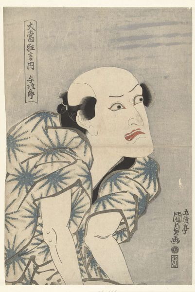Editor: Here we have Tōshūsai Sharaku's woodblock print from 1794, "The actor Sakata Hangoro III as Fujikawa Mizuemon," currently residing at the Art Institute of Chicago. It’s quite striking! The actor’s exaggerated features immediately grab your attention. How do you interpret this work? Curator: Sharaku's portraits are powerful critiques, challenging the glorification of celebrity in Edo-period Japan. While ostensibly portraying a famous actor, notice how his features are rendered almost grotesque. Do you see this as mere caricature, or could it be something more? Editor: I guess I assumed it was just stylized for the Ukiyo-e genre, but "grotesque" makes me rethink that. Was Sharaku making a statement about the actor or perhaps the Kabuki theater itself? Curator: Precisely! Consider the social hierarchy of the time. Actors, despite their fame, were often considered to be on the margins of society. Sharaku’s unflattering depiction could be read as a subversive commentary on class, questioning the perceived status of these performers. Does this reading change your understanding of the print? Editor: It definitely does. I had been looking at it as just a portrait, but now I see there’s potentially a critical message embedded within it about society's views on fame and status. So, beyond just capturing a likeness, Sharaku used this image to challenge those very notions? Curator: Absolutely. The artist is intervening to open space for discussion about social norms. Understanding Sharaku's work requires grappling with the power dynamics and social commentary inherent in Ukiyo-e prints, revealing the potential for art to be a vehicle for social critique, even in seemingly traditional forms. Editor: I hadn't thought about it that way before! I'm walking away with a totally different perspective and deeper appreciation for Sharaku's intention. Curator: Excellent!