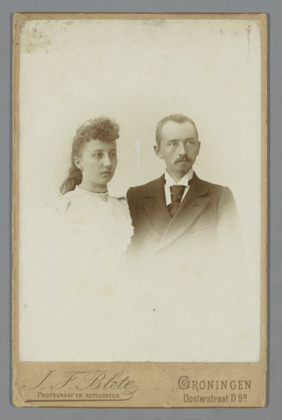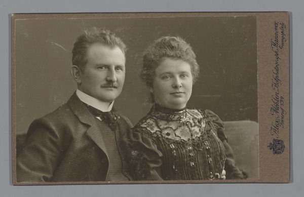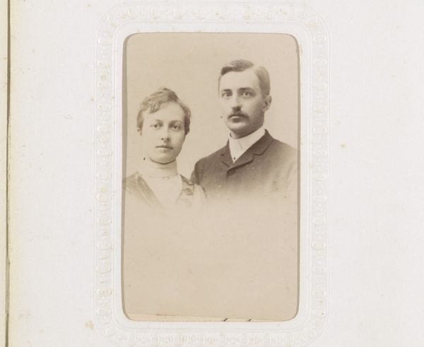 Wilhelm Frederick Antonius Delboy made this photographic print of an unknown man and woman at an unknown date. The photographic process is interesting; it's about capturing light and shadow, which is not dissimilar to painting in a way. Look at the way the light falls across the woman's face, how it defines the curve of her cheek and the line of her jaw. The lack of colour adds to the somber mood, focusing attention on the texture and tone of the image. It is a study of light and dark, just as much as it is a portrait of two people. Delboy’s eye captures more than just their likenesses. Looking at this, I am reminded of the portraiture of Nadar, whose work also embraced a certain realism, a lack of idealization. It shows the exchange of ideas across time, highlighting how artists continue to explore and experiment with different ways of seeing and representing the world. There's no right or wrong interpretation, just a continuous conversation between the viewer and the work.