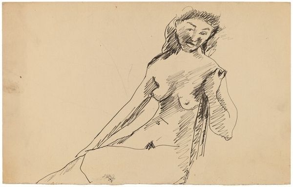 Pyotr Konchalovsky drew this reclining model with what looks like charcoal, maybe even a Conté crayon. The marks aren’t overworked, but they do create a really striking effect. I like to think about the ways charcoal can be so physical. You can really dig into the paper with it, or you can keep it light and airy, almost like a breath. Look at the way Konchalovsky uses these simple lines to define the volumes of the body, creating a sense of depth and weight with such a minimal approach. The hatching marks on the model's chest give way to softer, smudged lines around her arm. This piece reminds me of some of Matisse’s drawings, where he’s just feeling out the form with a few strokes. There’s a kind of art-historical conversation going on here, a lineage of artists grappling with the human form in their own unique ways. It’s not about perfect representation, but about capturing something essential.