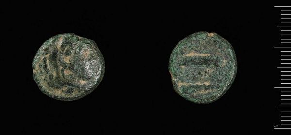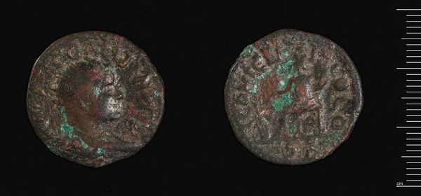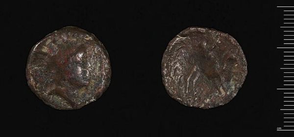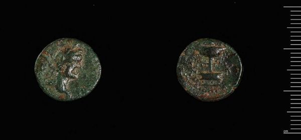 Curator: Here we have an artifact from a tumultuous era: a coin of Laodikeia ad Mare, minted during the reign of Elagabalus. Editor: It’s… small. But weighty, somehow, isn't it? All that history pressed into such a tiny, worn circle. Curator: Indeed. These coins were less about Elagabalus’s face—he used plenty of imagery promoting the cult of Sol Invictus. Editor: He was a bit of a showman, then? Turning governance into performance. I wonder how the common folk felt about that back then. Curator: There's a lot of debate about his motivations, but it certainly challenged Roman norms. The coin itself offered an opportunity to control the narrative. Editor: It's amazing to think of a coin as propaganda, but of course, it is. Even this little object tells a story. What a weight for such a small thing to carry through the ages.