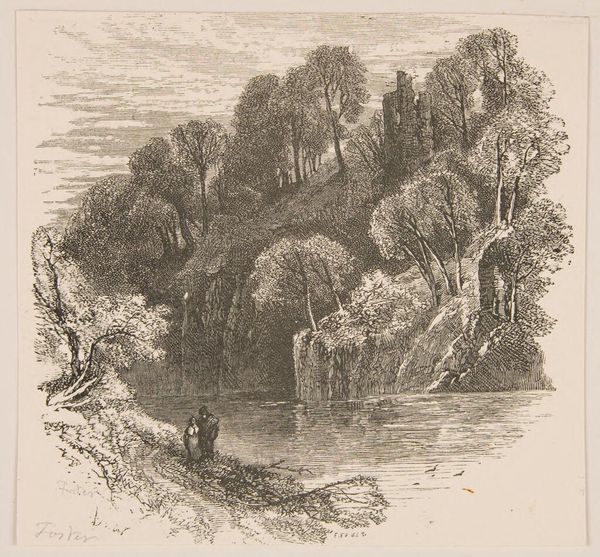 Curator: This is "Girl by the River," an engraving we attribute to Edmund William Evans at the Harvard Art Museums. It's quite lovely. Editor: It feels like a memory, doesn't it? The soft light, the almost ethereal quality of the landscape. It's idealized nature. Curator: I think you're right. This image taps into a deep nostalgia for a simpler, pastoral life, a world where humans exist harmoniously with nature. Editor: But who is this girl? She seems so lost in thought, so separate from her surroundings, yet she's grounded here, in the water. Is she a symbol of something? Curator: Maybe she's the embodiment of that longing, that separation. Or maybe she's just a girl by a river, a moment captured in time that resonates with our own yearning for connection. Editor: Either way, it works. I feel like I've been there myself, knee-deep in that river, contemplating the mysteries of life. Curator: I appreciate that about art, it’s ability to transport us to places, real or imagined, and to reflect on our shared humanity.