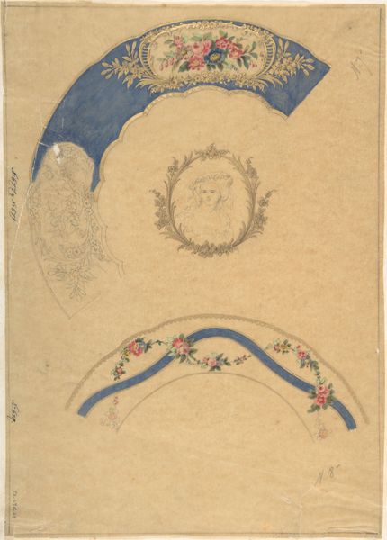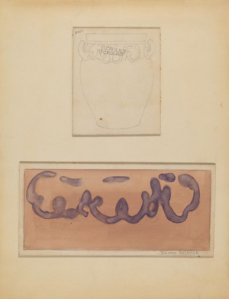 Yolande Delasser made this study for a crock, most likely on paper, in the late 19th or early 20th century. It's a really interesting combination of pencil and watercolor that gives it this airy, almost dreamlike quality. What strikes me is how the blue pigment pools and flows in the decorative frieze. The way the watercolor bleeds outward, creating these soft, diffused edges, it gives the design a sense of depth and movement. There's something both precise and improvisational about it. It's controlled in the sense that it depicts a repeating pattern, but the execution feels spontaneous and free. It reminds me of some of the studies that Van Gogh did of Japanese prints, where he was trying to understand and translate a different visual language. Like Van Gogh, Delasser seems to be exploring the possibilities of the medium itself. It's less about capturing a specific image and more about the act of seeing and feeling. Ultimately, the piece invites us to slow down, look closely, and appreciate the subtle beauty of the everyday.
