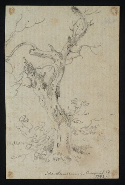 Friedrich Metz created this drawing, "Trees," using pencil on paper, and it now resides in the Städel Museum. The composition, rendered in delicate graphite lines, captures the sinuous form of a tree. Its trunk and branches twist and reach across the page in a counter-clockwise manner. The meticulous details of foliage interspersed with bare branches create a rich interplay of light and shadow. Metz’s focus on the tree’s organic structure reflects an engagement with Romantic ideals, positioning nature as a source of profound contemplation. The pencil lines trace the tree's contours, emphasizing its changing shape and texture, blurring the distinction between its solid form and the surrounding negative space. This delicate interplay evokes a sense of vulnerability. Notice the drawing's emphasis on line and form. It invites us to consider how these elements alone can evoke powerful emotional and intellectual responses, reminding us that art is not merely a representation but an experience shaped by the artist's hand.