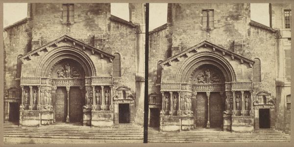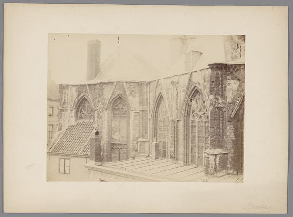Curator: Giacomo Brogi, between 1856 and 1881, captured this albumen print titled "Westzijde van de Orsanmichele te Florence." It presents a detailed view of the Orsanmichele church’s exterior in Florence. Editor: It's striking how the muted color palette emphasizes the architectural details. The photograph feels very still, almost like a stage set waiting for actors. There is something about the contrast between the stonework and the overcast sky that is very haunting. Curator: Absolutely. Brogi was keen to document the transformation of Italian cities, specifically in the context of its own burgeoning nationalism. Photography, with its then-novel indexical nature, became a crucial tool for recording architectural heritage and its role in civic identity. Notice the tonal art at work. The building, through Brogi's perspective, appears as both permanent and also ephemeral given the soft washes of light. Editor: Considering the period, it's also important to view this photograph through the lens of access and power. Who was Brogi photographing for? And whose story about Florence and its history does this particular image tell? This image makes me think about labor, actually –who built the structure itself, and what conditions? I wish the image did more to suggest social context in that way. Curator: I agree there's always a question of whose narrative is privileged. In this case, Brogi catered to the interests of wealthy tourists and patrons eager to take back souvenirs of Italian cultural glory and he found great financial success with it, eventually passing down his thriving studio to his sons. That detail informs what he chose to photograph. But the photograph itself also allows us, from a 21st-century perspective, to then unpack those very dynamics of representation. The soft focus and composition elevate the building, no question. But it becomes useful visual data for a modern interrogation, wouldn't you say? Editor: I would. This isn't just about aesthetic appreciation. It's about engaging critically with the power dynamics inherent in image-making. I am especially compelled by thinking of the architectural context as it intersects with modern labor practice. Curator: Seeing how the visual past reverberates in our current dialogues, making it not just an object of study, but also a catalyst for change. Editor: Right. It’s not just about admiring the church but acknowledging the past while asking how we build our future, literally and figuratively.