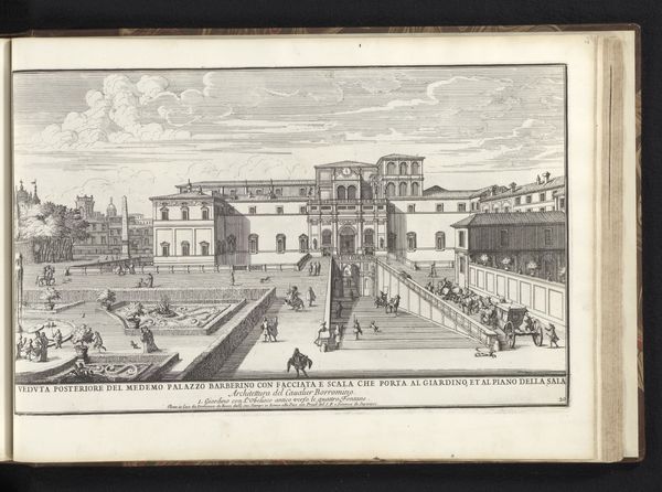 This print of the Villa Aldobrandini in Frascati, was made by Alessandro Specchi, a Roman engraver who died in 1729. It showcases the capabilities of intaglio printmaking, a process where an image is incised into a metal plate, in this instance, copper. Look closely and you can see how Specchi used fine lines to build up tone and texture, describing the stone facade of the villa. The very act of engraving – the physical labor of cutting lines into copper – mirrors the labor involved in constructing the Villa itself. We can infer that the making of this imposing architectural statement involved artisans and laborers, whose efforts enabled the luxurious lifestyle of the elite. The print itself also speaks to a culture of consumption, indicating a market for images that celebrated wealth, power and the built environment. By focusing on Specchi's choices of material and the processes involved in his work, we can understand this image not just as a picture, but as a social document deeply embedded in its time.
