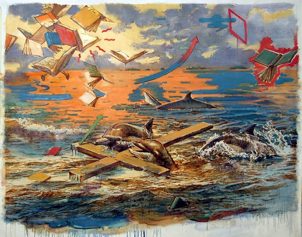 Dominique Appia crafted this untitled piece depicting an aquatic scene, brimming with symbolism echoing through art history. The fish, ancient symbols of fertility and abundance, swim here in a vibrant underwater world. Yet, consider the early Christian use of the fish as a coded symbol for Christ—Ichthys. This symbol reappears throughout time, a testament to cultural memory. Above, a flock of birds soars across the sky, evoking the age-old motif of the soul's journey or the passage of time. In ancient Egyptian art, birds often represented the human soul, the Ba, journeying between the worlds of the living and the dead. Notice how the birds, suspended between water and sky, conjure a potent psychological tension, a yearning for transcendence. Appia’s composition, rich with primal symbols, resonates with our deepest, most enduring archetypes. Note the non-linear progression of these symbols; the way they resurface, evolve, and take on new meanings, forever engaging us in an unconscious dialogue across the ages.
