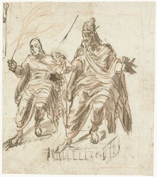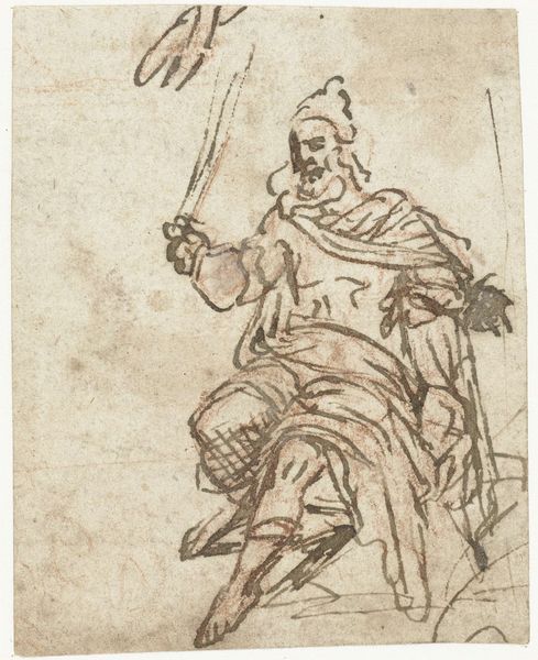 Jacques Courtois created this sketch of Saint Nicholas and a desperate sailor using pen and brown ink on paper. The lines are quickly and freely drawn, giving the figures a sense of movement and emotion. Courtois clearly wanted to capture the essence of the story, not the details. The light paper shows every stroke, revealing the artist's hand at work and the immediacy of the creative process. Pen and ink are relatively inexpensive and highly portable, making them ideal for preparatory drawings like this one. Drawings like this were essential in an artist's practice; they were used to explore ideas, work out compositions, and study figures before committing to a final painting. It offers a glimpse into the artist's studio, and reminds us that even the most polished works of art often began with humble materials and a lot of hard labor. It also bridges the gap between craft and fine art, by demonstrating the importance of technical skill in the creation of even the most seemingly effortless images.