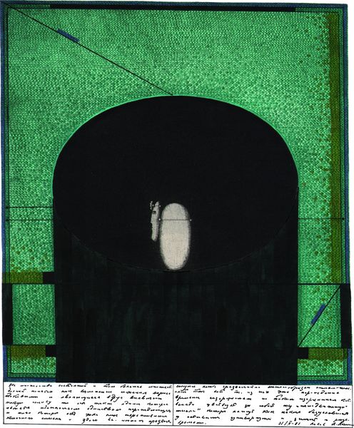 Curator: This is Graham Sutherland's "La Roccia," created sometime during his lifetime from 1903 to 1980 and held at the Tate. Editor: It feels almost like a stage set. The heavy green tones and looming darkness evoke a very theatrical sense of drama. Curator: Sutherland's engagement with the physical world, his labor in transforming the natural landscape through mark-making, is really evident here. Look at how the texture of the stone is built up. Editor: Indeed, and notice how the forms almost suggest faces. There's a mirroring, perhaps, between the human form and the enduring presence of nature. Curator: I'm fascinated by how his process, the lithography, allows for a layering that speaks to the geological processes themselves. Editor: Ultimately, I think Sutherland's piece reminds us of the human desire to find meaning and faces in everything around us, in the symbols nature gives us. Curator: Absolutely. A tangible reminder of the artist's labor and nature’s material transformations.
