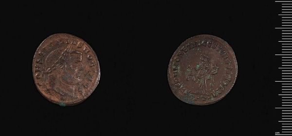 Curator: This is a coin, specifically an AE4, of Constantine I, minted in Constantinople. The weight is 2.94 grams. Editor: It looks almost ethereal, like something pulled from a dream. The metal's aged into this gorgeous, deep patina. It gives me a feeling of ancient power. Curator: These coins served as a tool for imperial propaganda and economic exchange. Constantine's image asserts authority. The imagery and inscriptions reflect his political and religious agendas. Editor: You know, holding something like this, you can almost feel the weight of history, the lives that touched it, the stories it could tell. It's like a tiny portal. Curator: Absolutely. Examining it through the lens of postcolonial theory, we see how objects like this coin reinforce narratives of dominance and power that have shaped Western identity. Editor: I just see this little, beautiful thing and wonder about the hands it passed through. It's amazing how an object so small can hold so much history. Curator: It's a potent reminder of the complex ways in which art and power intersect. Editor: Yeah, it's a little meditation on time and empires.